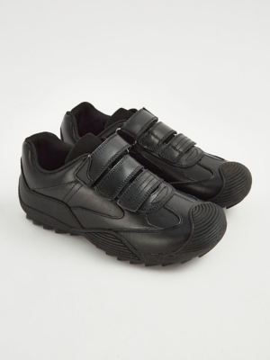 Black Triple Strap Scuff Resistant School Shoes School at ASDA